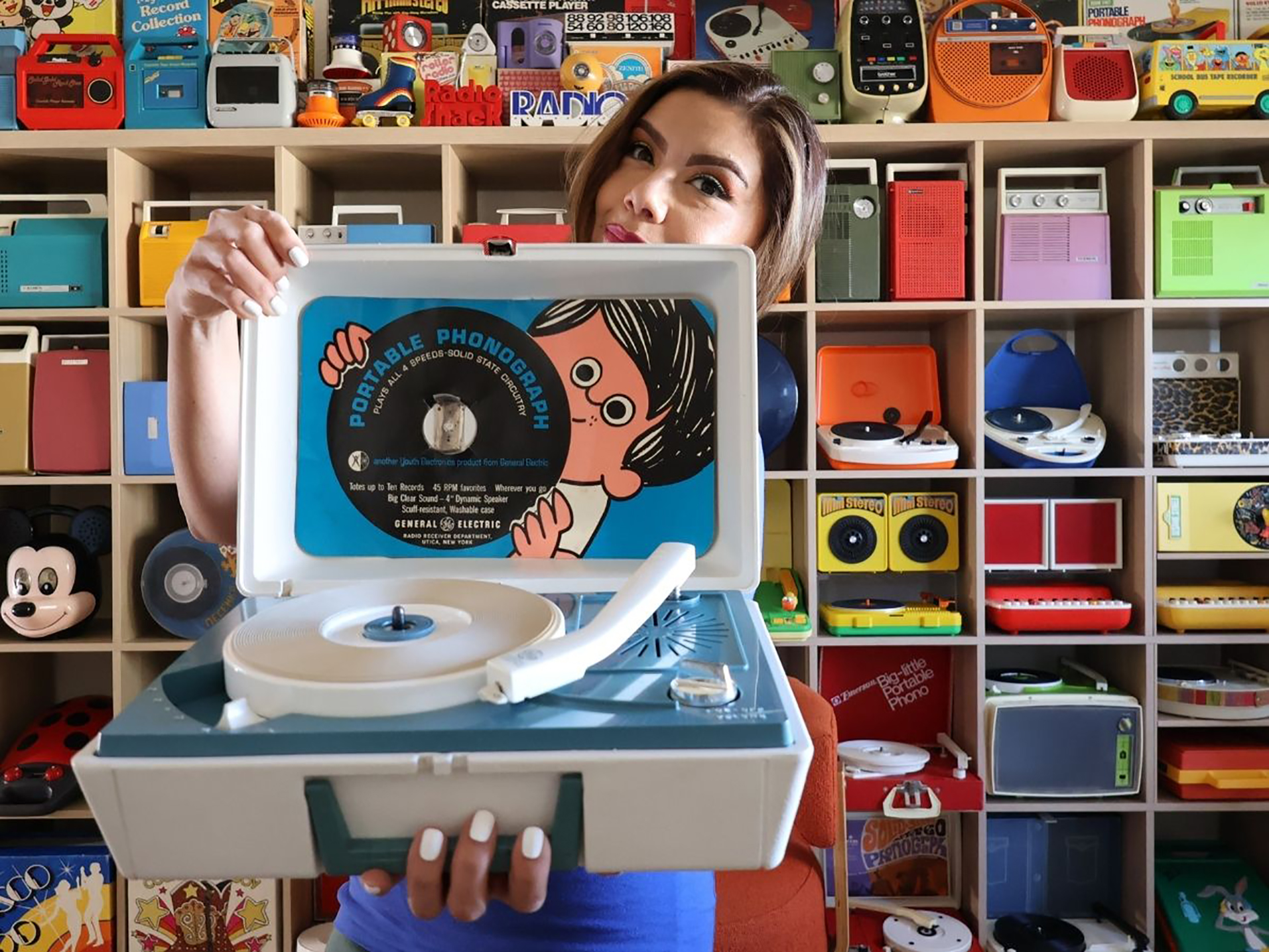 En una era donde la música es un flujo invisible de bits que vive en la “nube”, Paola Puente prefiere mantener los pies —y las agujas— sobre la tierra. Pero no en cualquier tierra. Su colección no descansa en pesados muebles de caoba; su tesoro está diseñado para moverse, para viajar y para desafiar las leyes de la gravedad. Bienvenidos al santuario de los tocadiscos portátiles, el eslabón perdido entre el gramófono de maleta y el iPod.