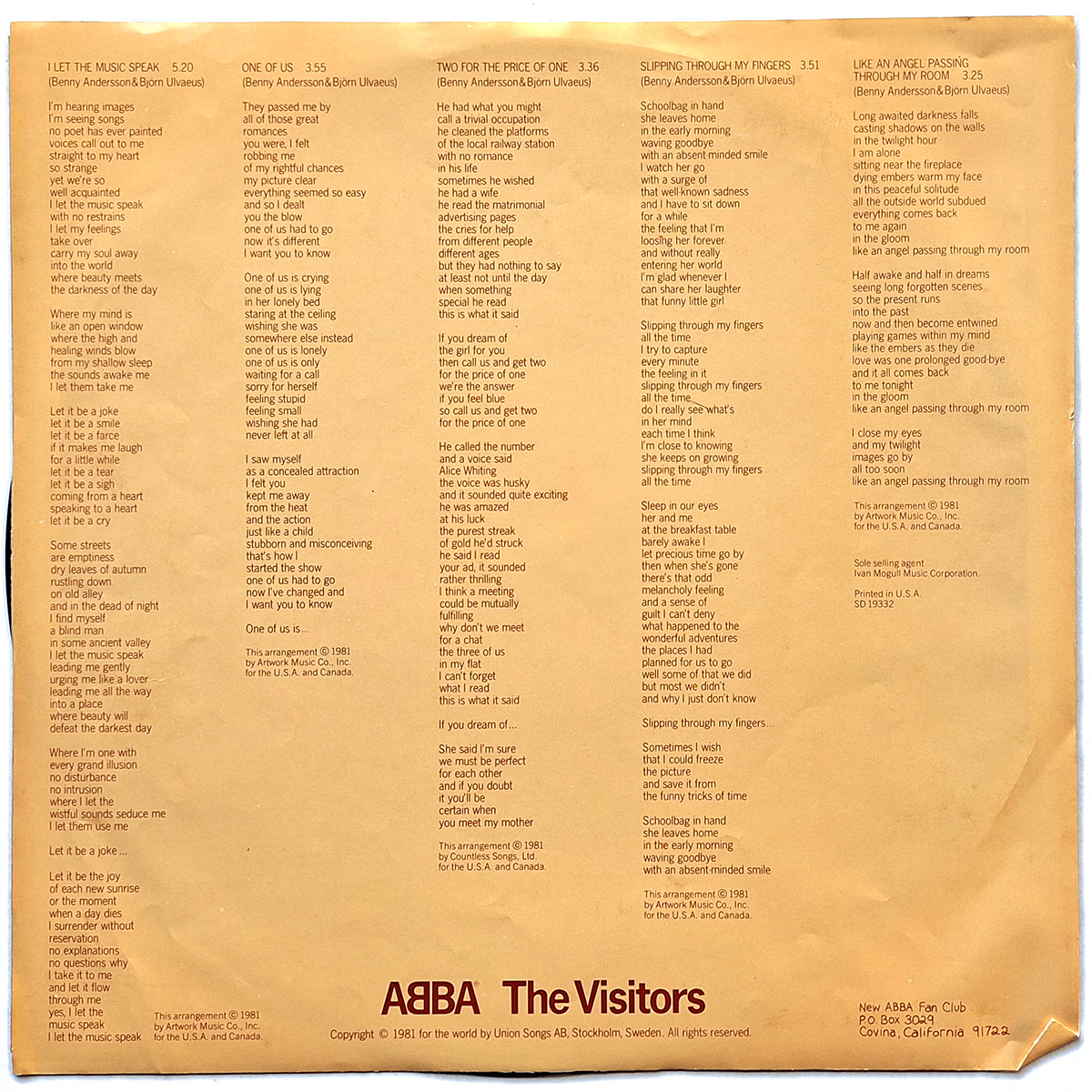 ABBA. THE VISITORS