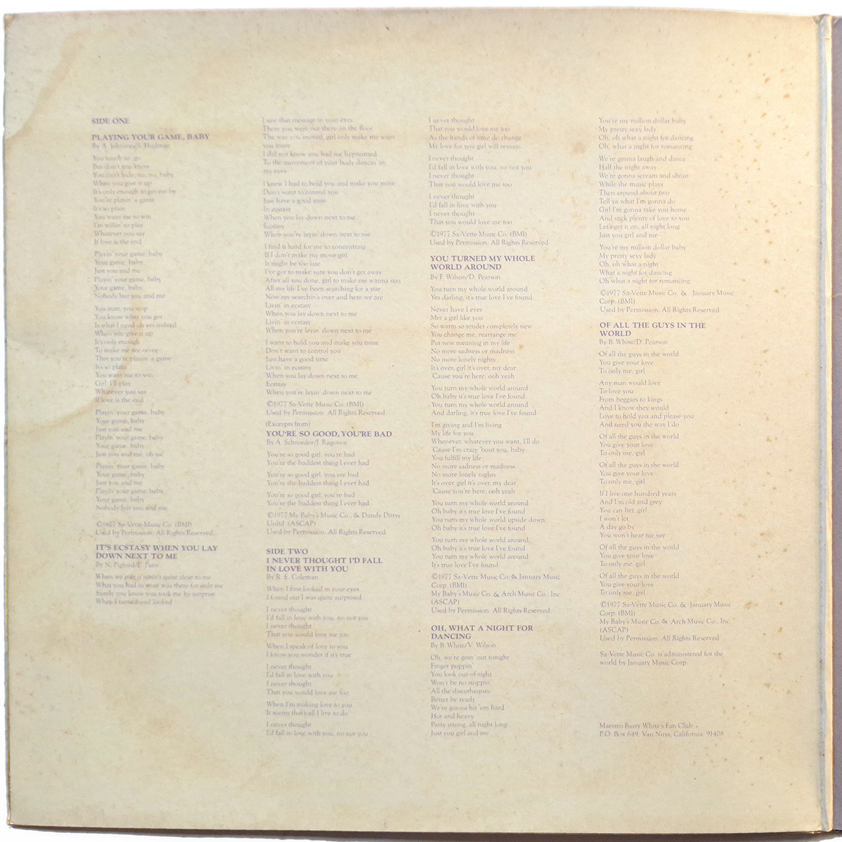 BARRY WHITE. SINGS FOR SOMEONE YOU LOVE