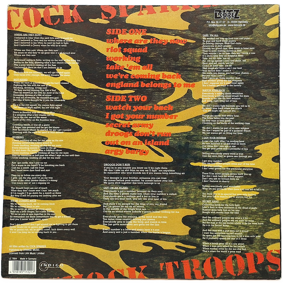 COCK SPARRER. SHOCK TROOPS