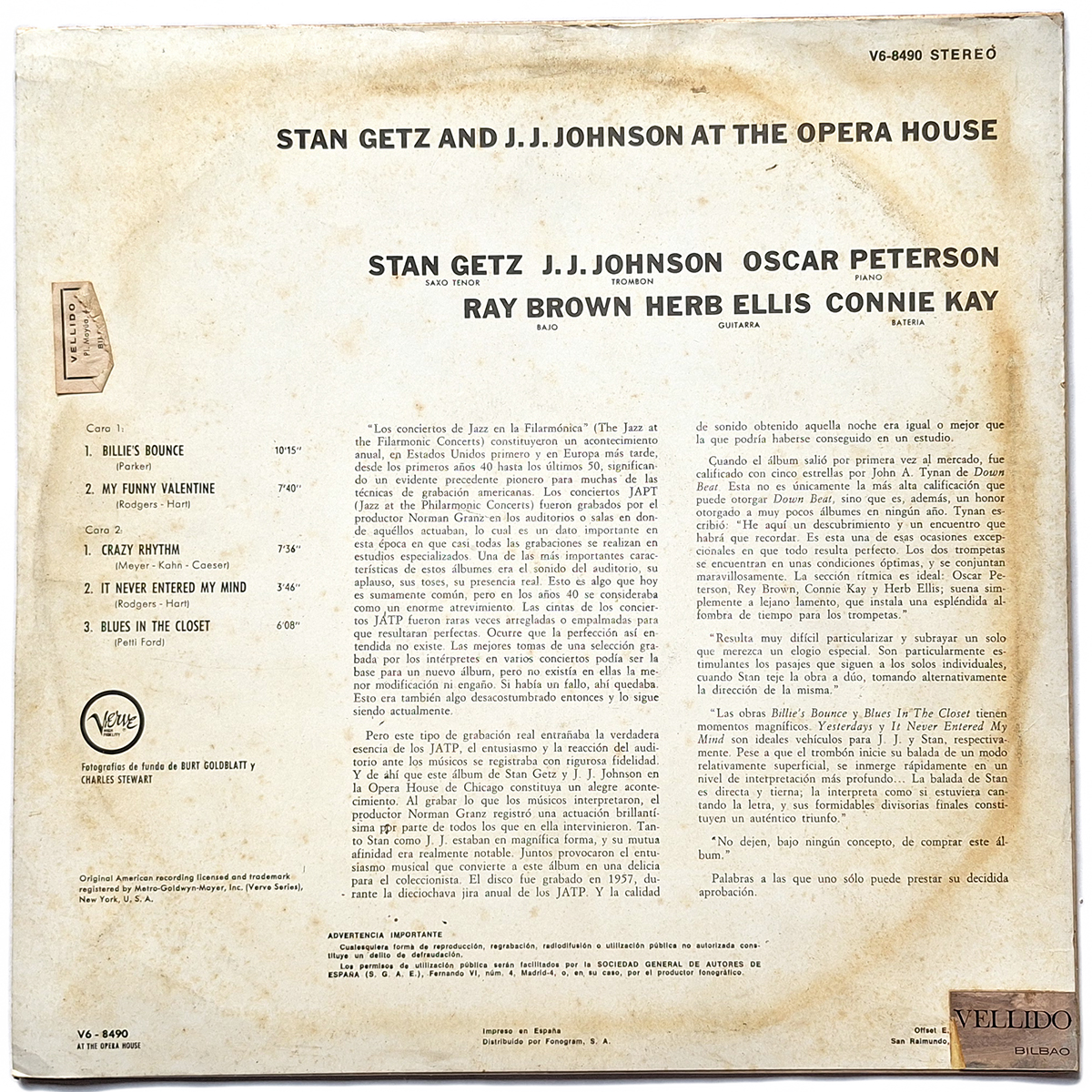 STAN GETZ AND J.J. JOHNSON. AT THE OPERA HOUSE