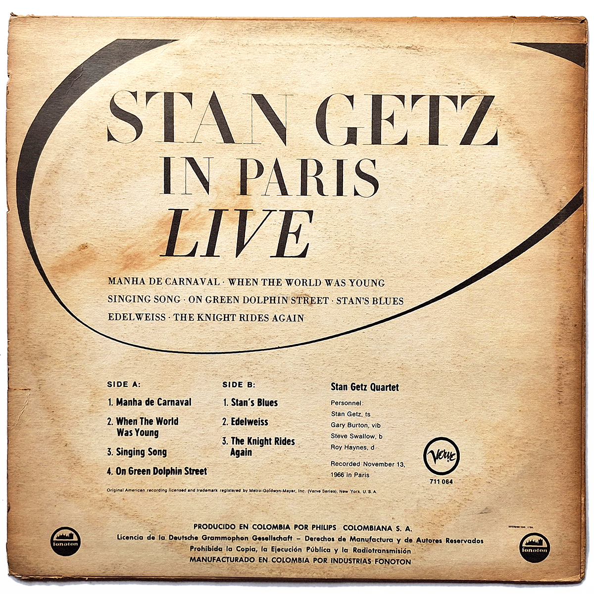 STAN GETZ. IN PARIS LIVE